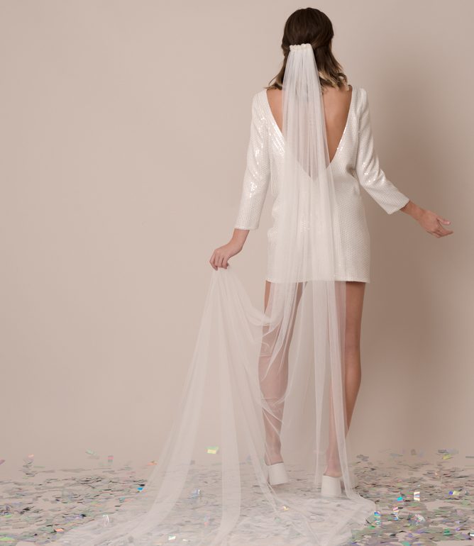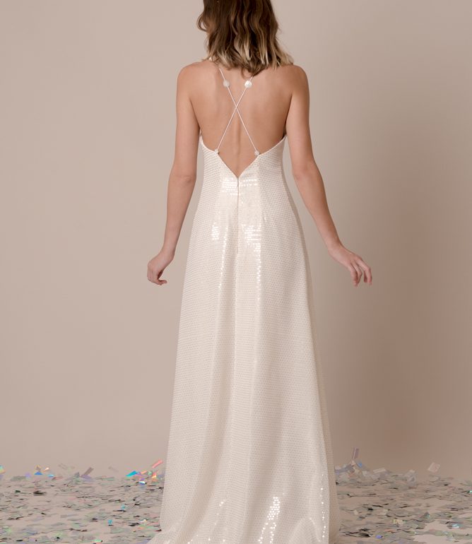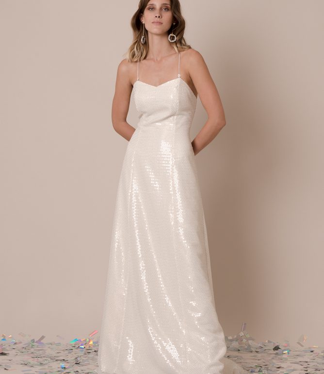 Puedes encontrar por ejemplo este vestido de novia DALIA de lentejuelas ideal para el día o para la noche.