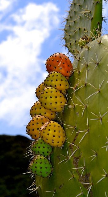 La pitahaya es una fruta silvestre también conocida como «fruta del dragón» es de un color rosa intenso. Dentro de la cáscara tiene un aspecto parecido a la pulpa de la uva y está llena de pequeñas semillas negras redondas. Su sabor es muy dulce que se puede comparar al del kiwi.