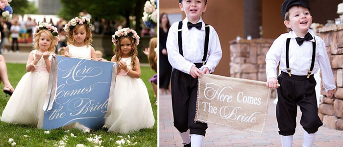 Hay muchas ideas originales de hacer que los niños sean protagonistas por unos minutos en tu boda, por ejemplo momentos antes de que entre la novia, con algún letrero divertido o llevando flores. Aquí te dejamos ideas divertidas de cómo vestirlos para el día de tu boda.