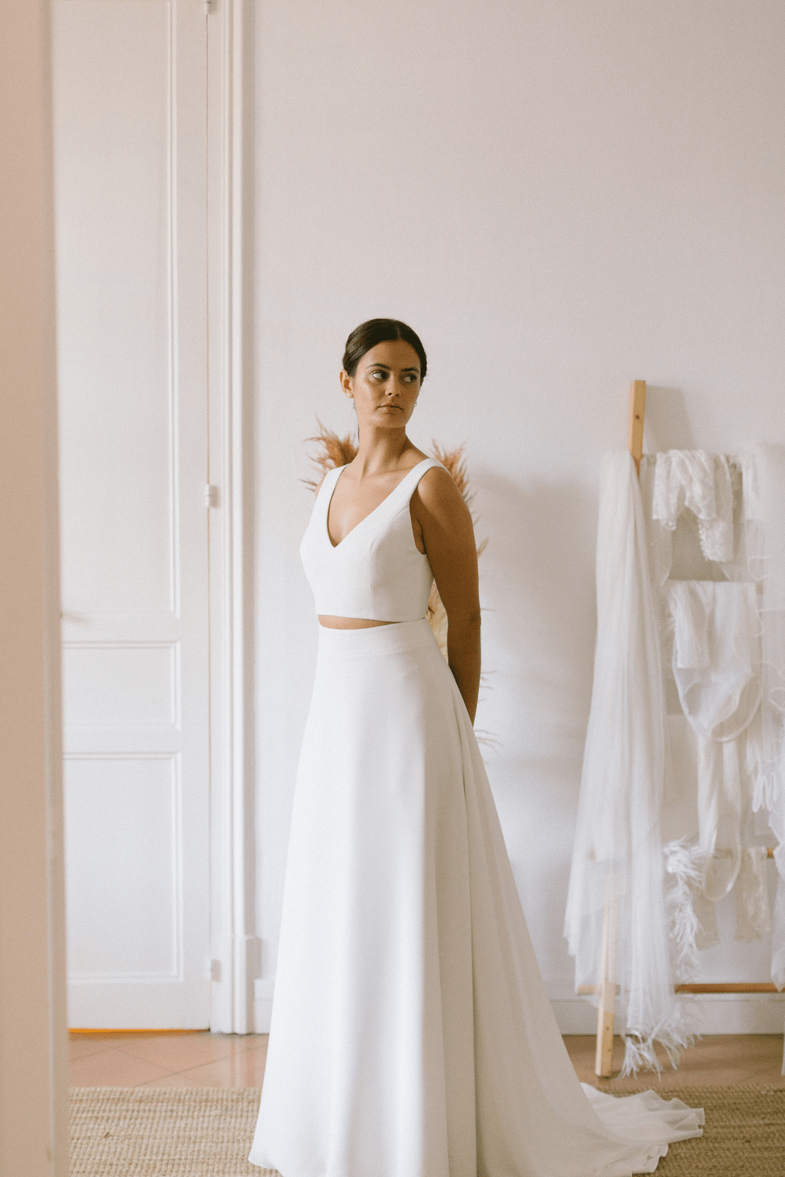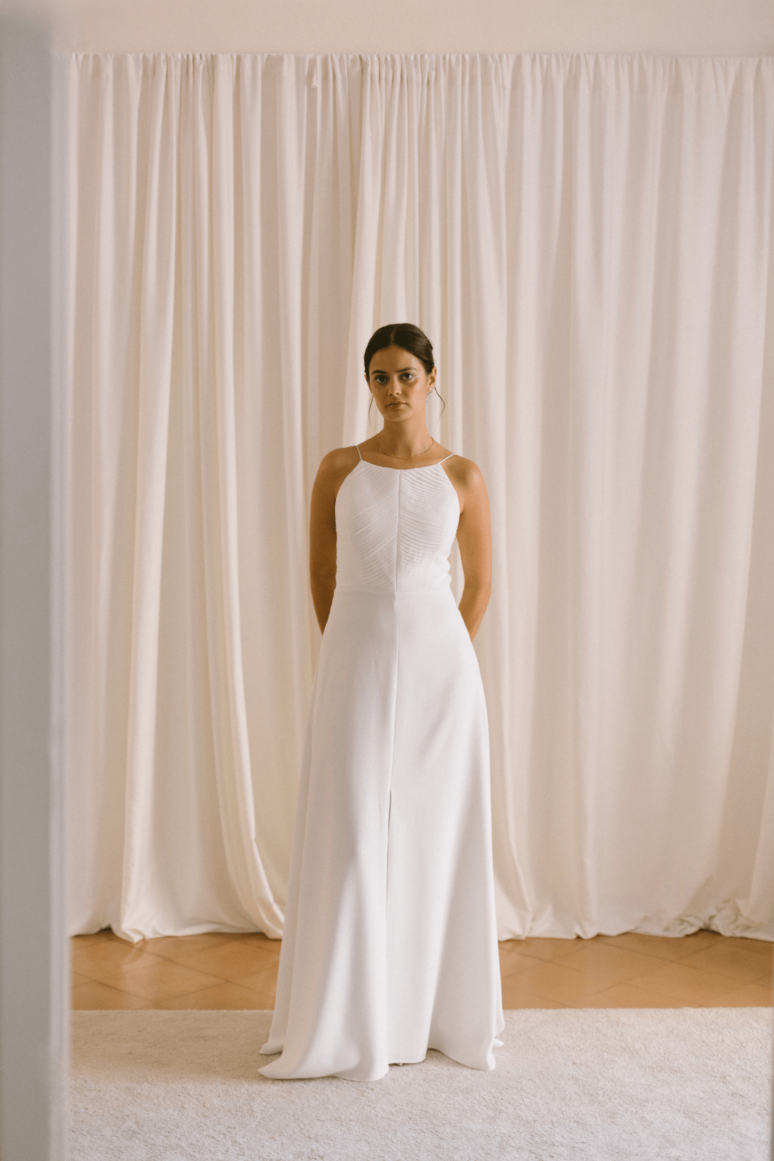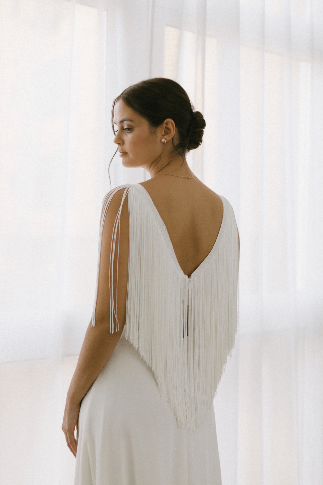 Vestidos que destilan serenidad, fuerza y pureza, como si cada tejido hubiera sido bañado por la energía de una piedra preciosa.