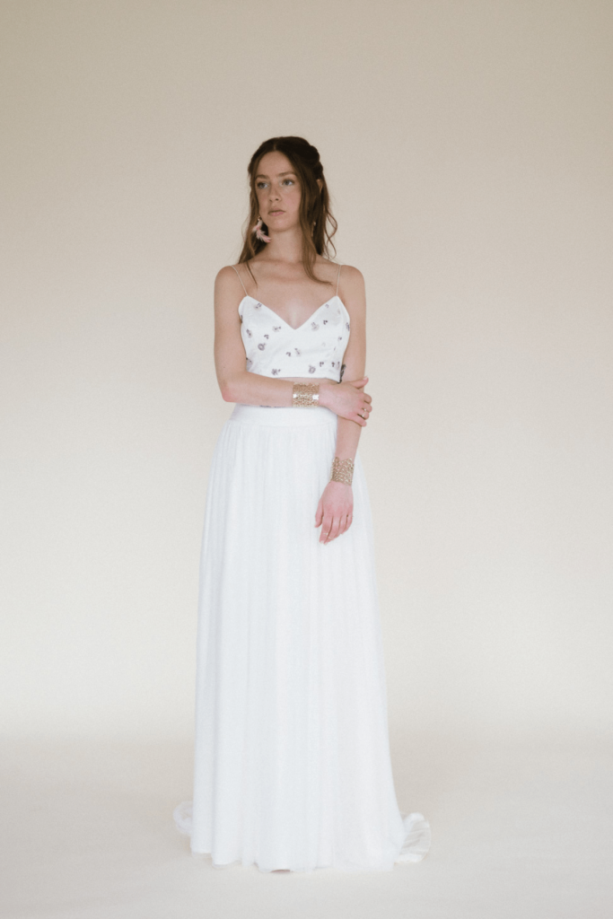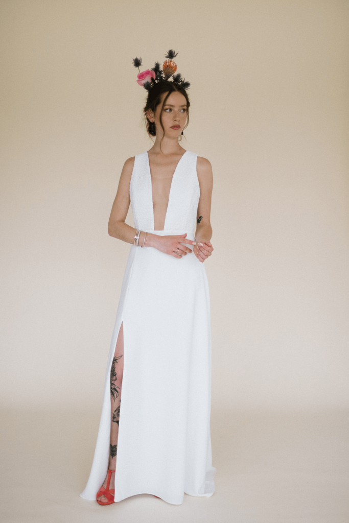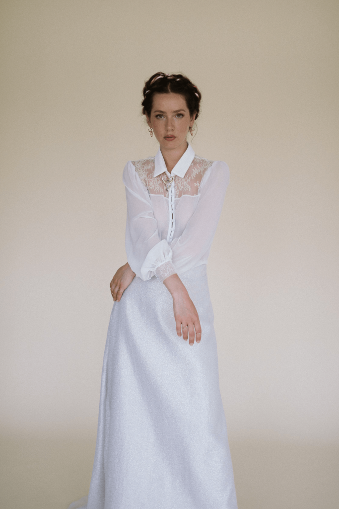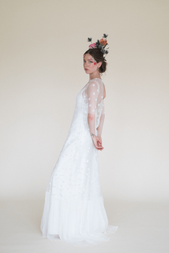 Tejidos fluidos, bordados y guipures con un toque “rebelbride” protagonizan la colección de vestidos de novia más personal de Paola Carolina inspirada en recuerdos de su infancia.