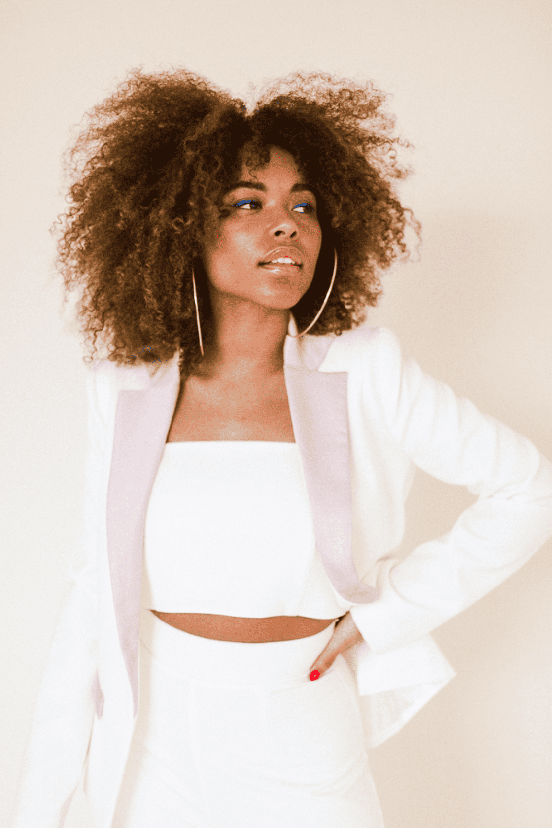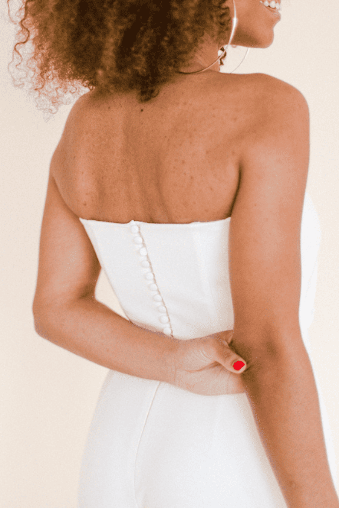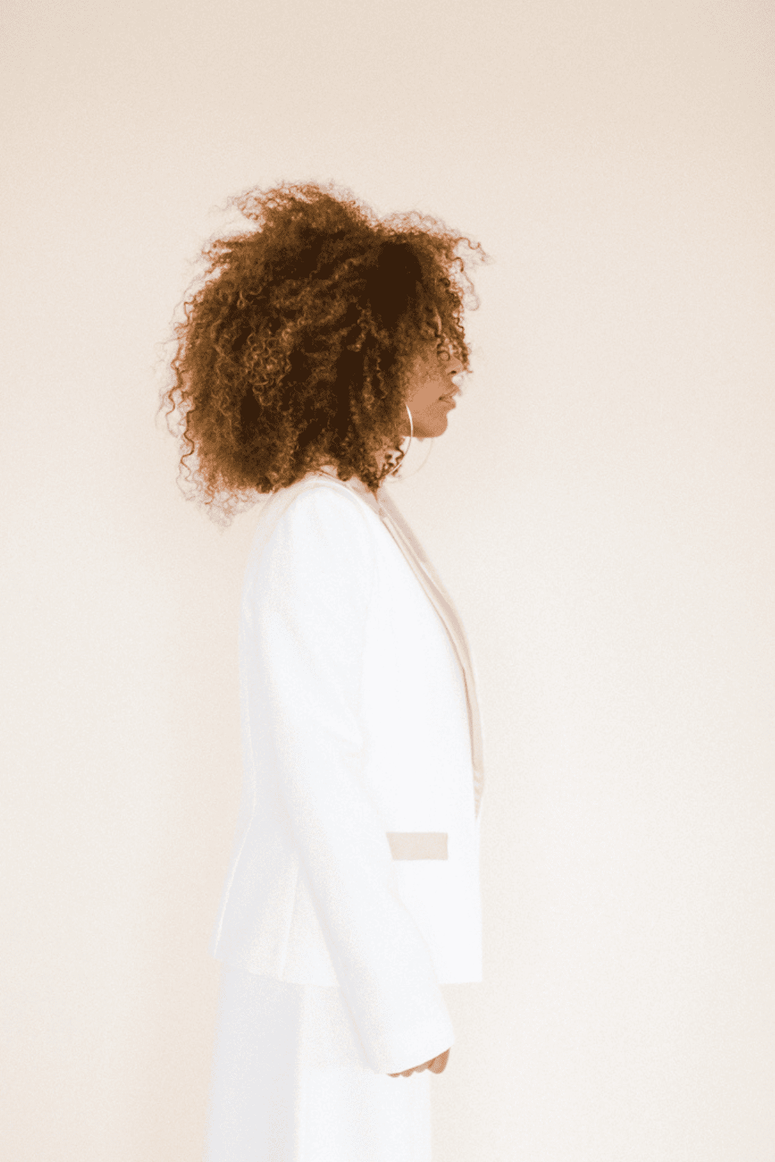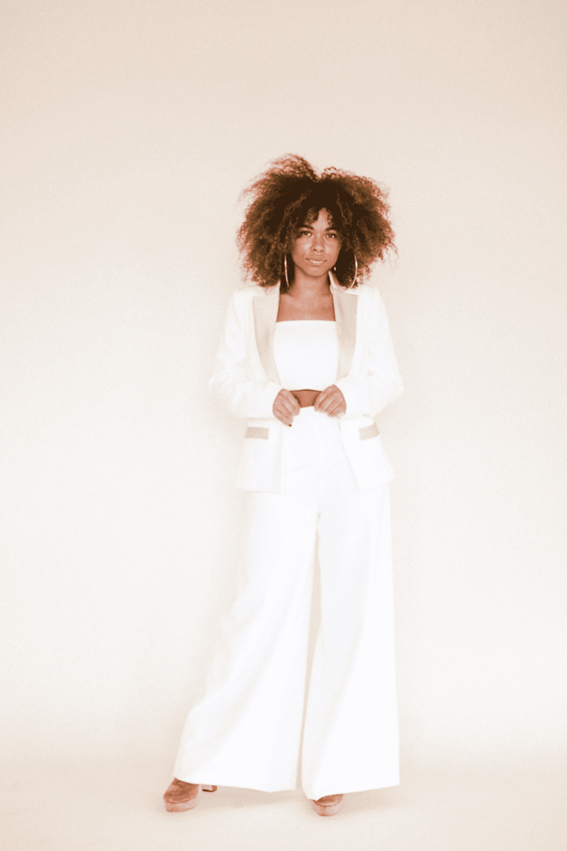 Crepe con elastano, forro poliéster con opción de color en solapa.