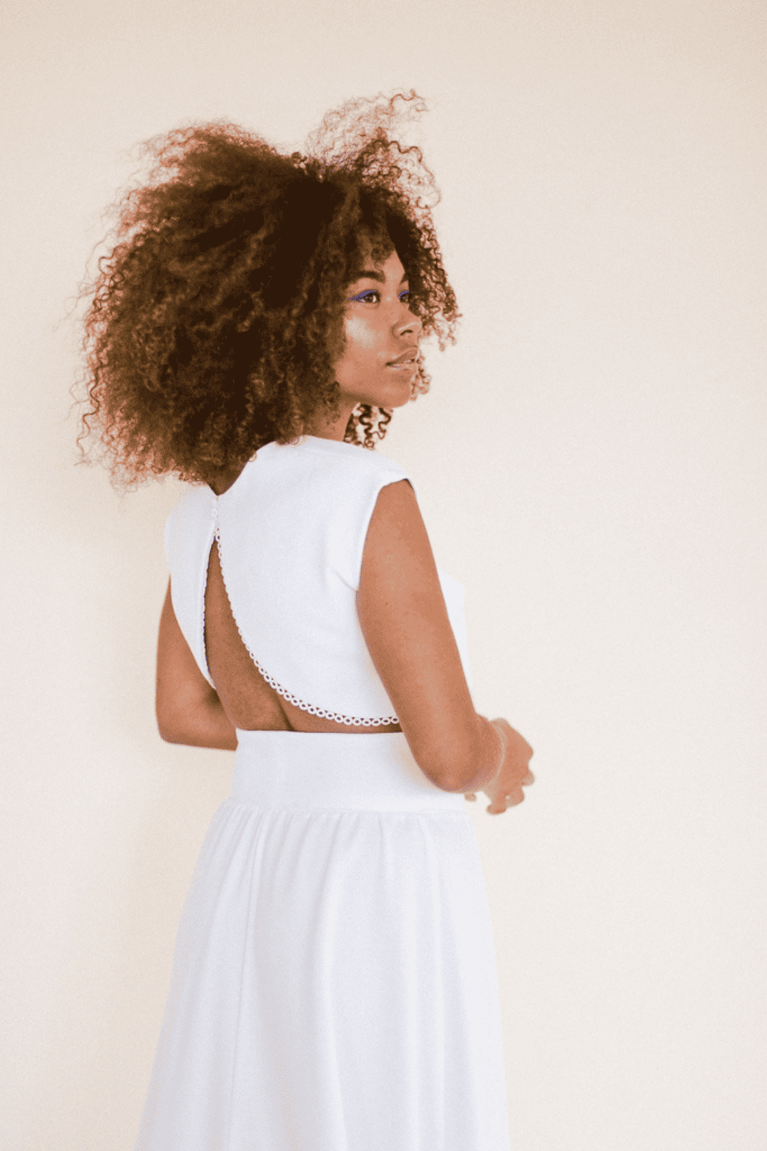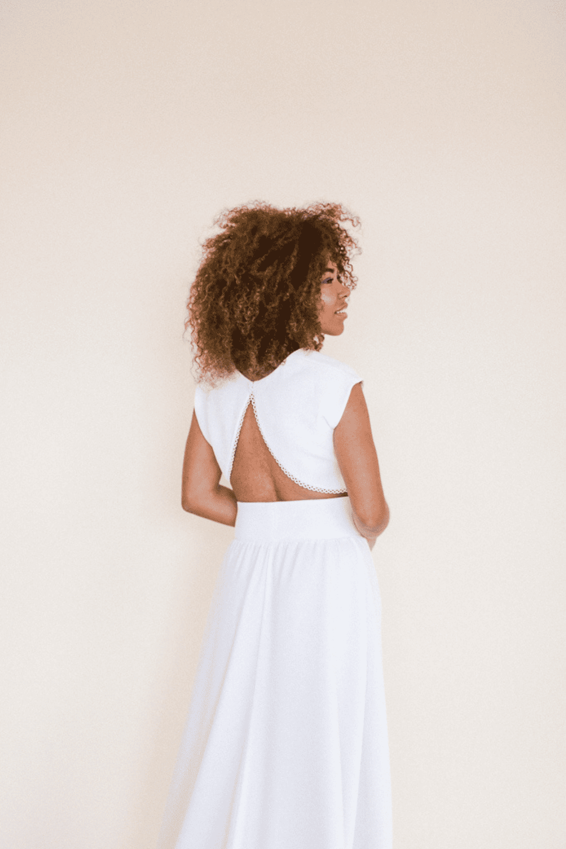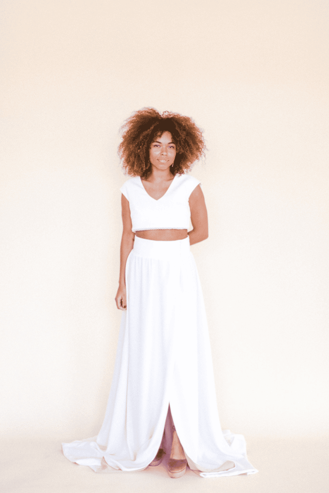 Crepe entretelado con terminación de algodón en bajo.