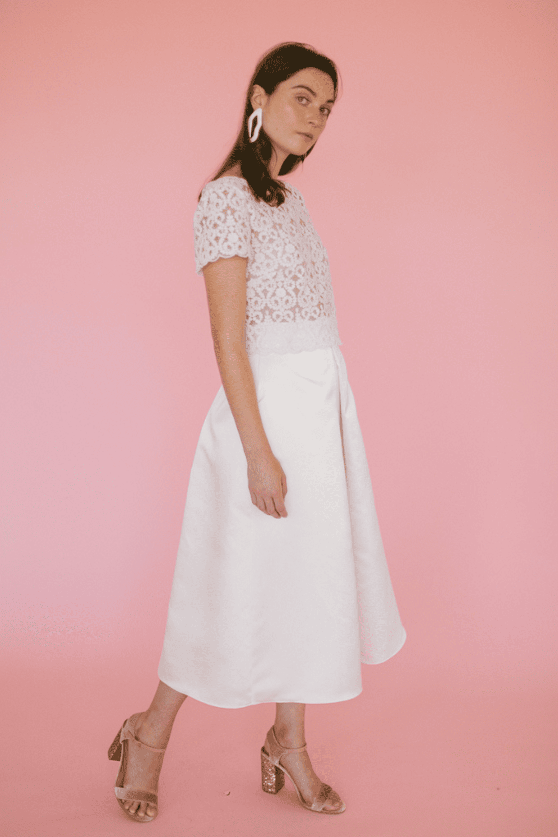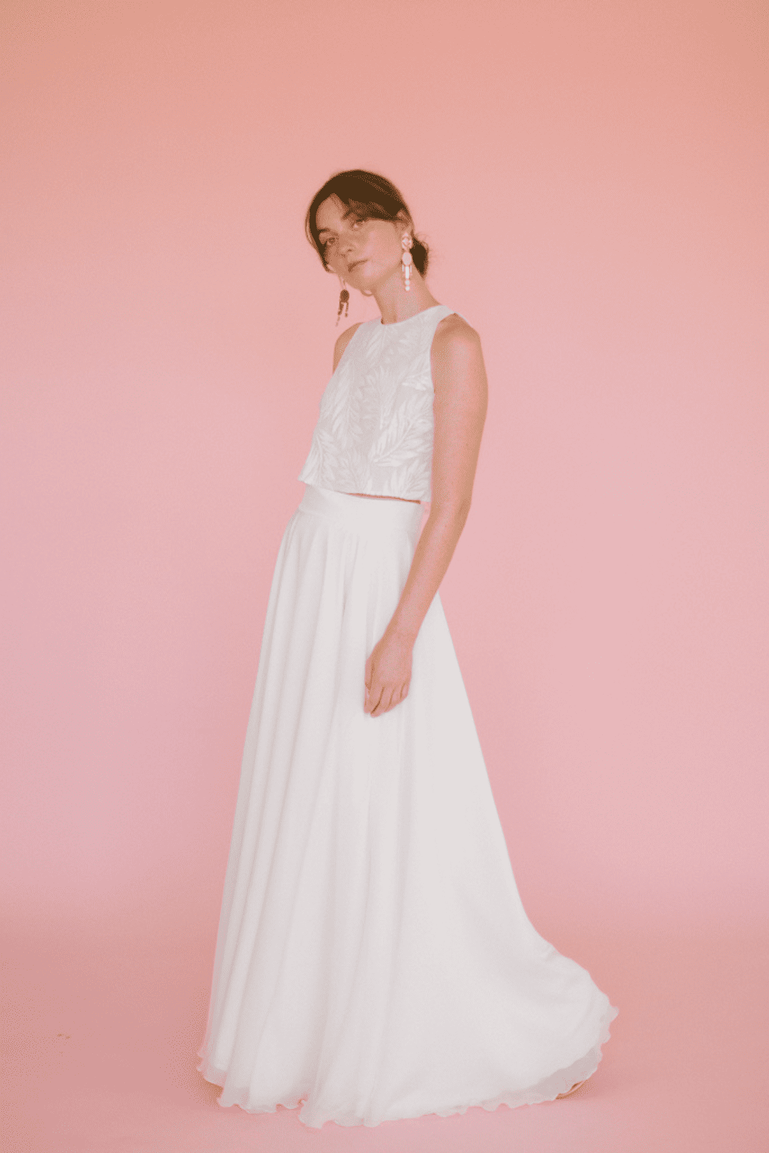 Top Loto + Falda Fresie + Sobrevestido Iris