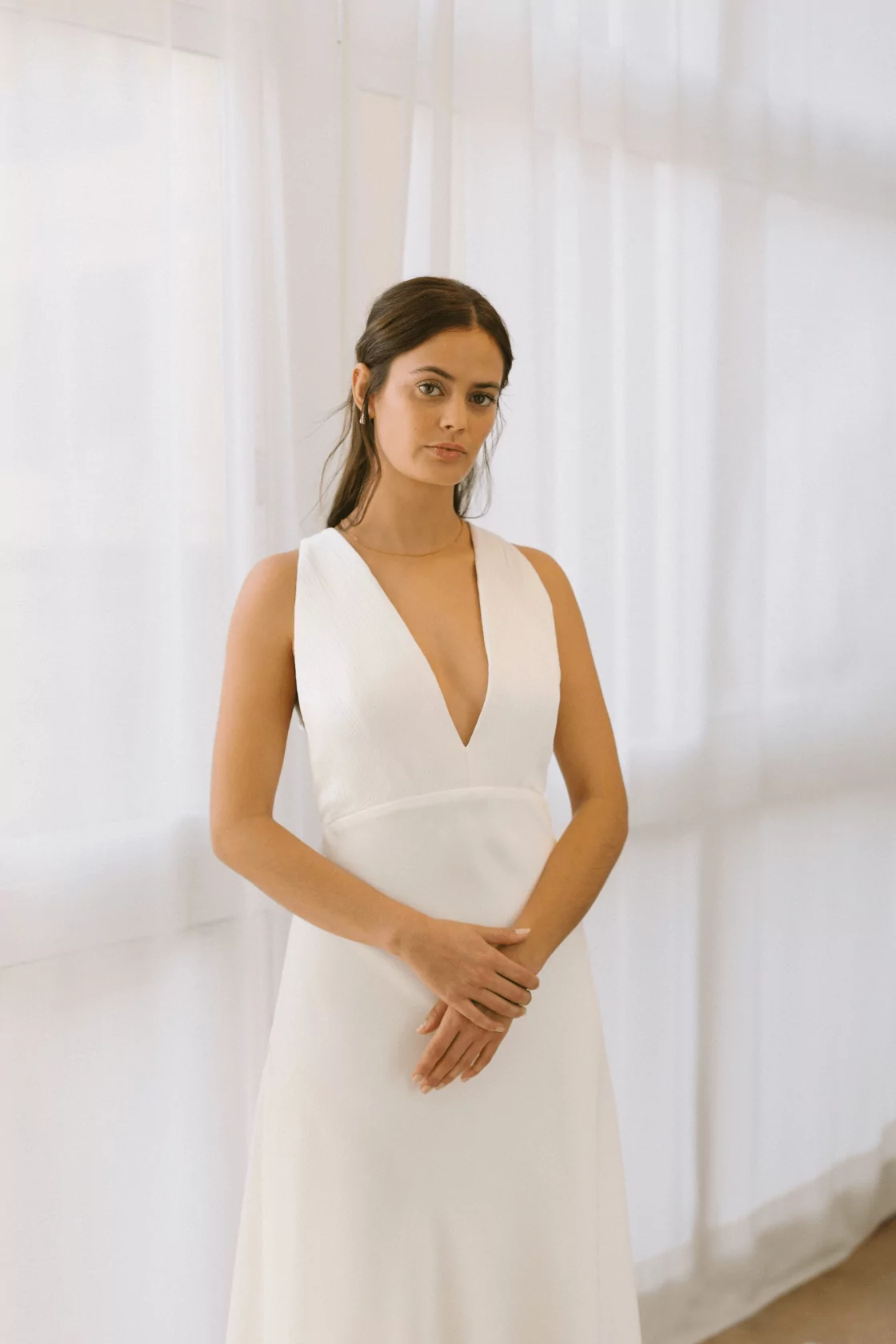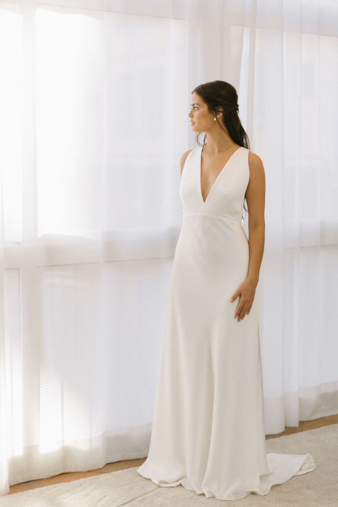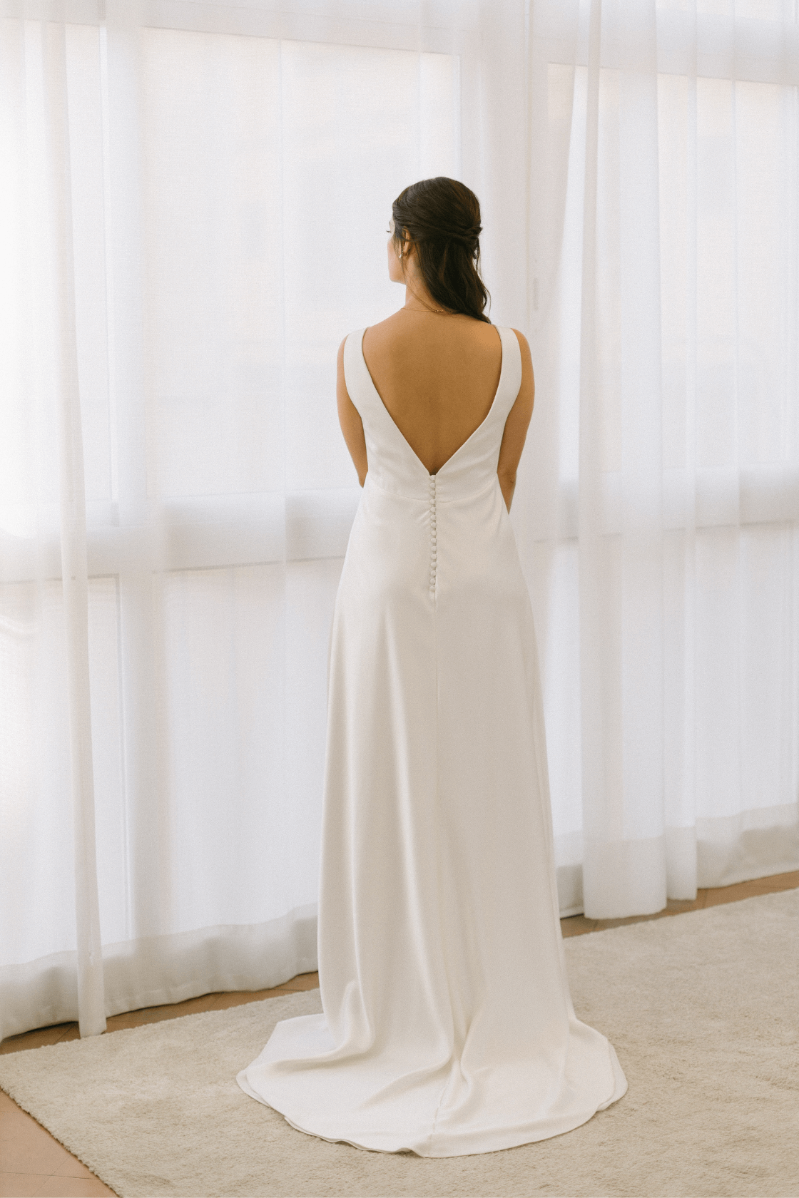 Un vestido de novia pensado para mujeres que buscan distinción, suavidad y una elegancia atemporal en su gran día.